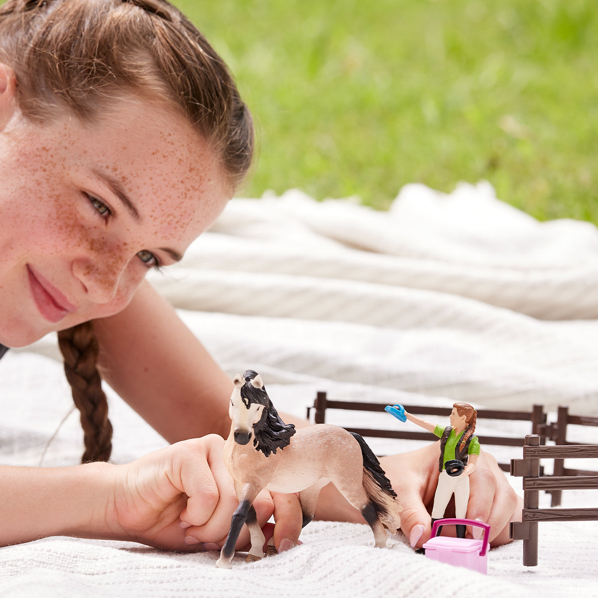 The Andalusian is really enjoying practise today. All jumps are going really well. Afterwards it is given some treats, and is groomed and brushed by the keeper.