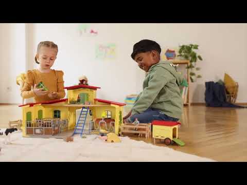 Cock-a-doodle-doo! What's the rooster crowing about? It's the Mobile Chicken Coop playset from Schleich Farm World! Mother hen wants a little fresh air"...let's open up the chicken coop so she can roam free. Includes two exclusive toy chickens available only with this playset, as well as the coop, a toy chick, and even some tiny chicken eggs.